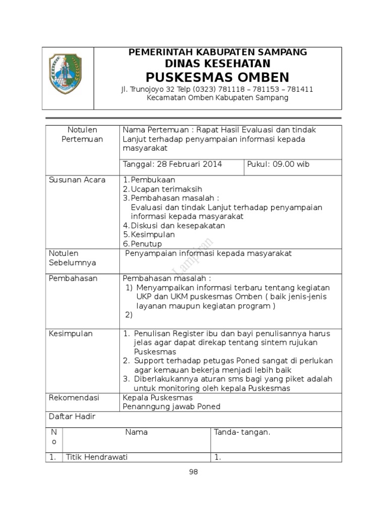Melalui notulen rapat, hasil rapat yang berfungsi sebagai bahan dokumentasi dapat dengan mudah diketahui. Selain itu, notulen juga akan dipertanggungjawabkan pada seluruh anggota atau peserta acara. Simak contoh notulen rapat di sini, yuk! By guru dafaposted on november 19, 2020. Setiap kegiatan rapat harus menyertakan notulen agar dapat memudahakan membuat laporan.