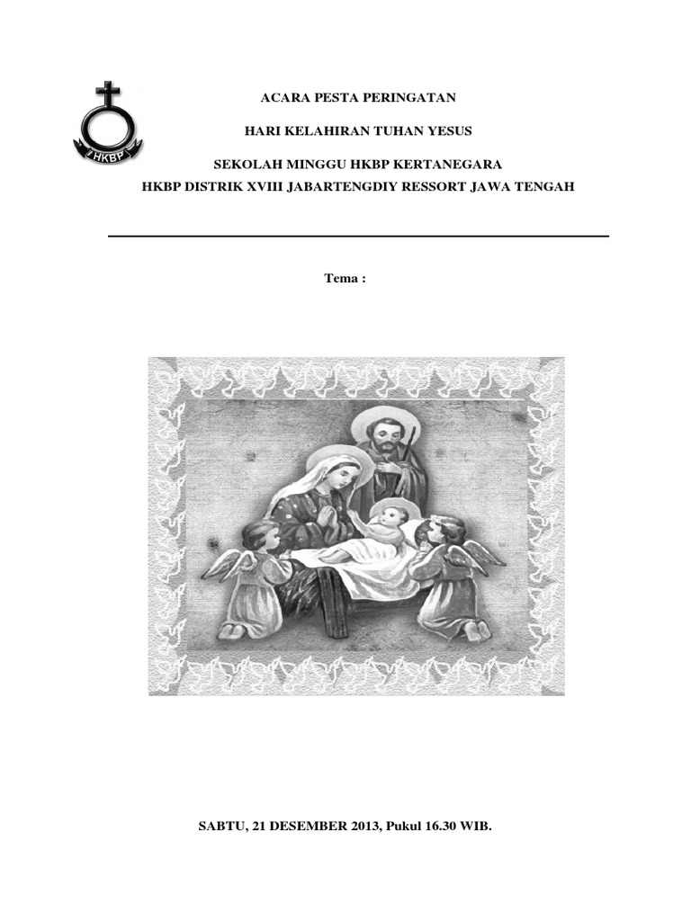 Susunan acara perayaan natal keluarga toraja. Hkbp pondok gede perayaan natal sekolah minggu. Ketika mengadakan acara natal maka biasanya pihak sekolah akan memberikan undangan bacaan i bacaan. Acara ini dilaksanakan pada minggu 15 desember. Selamat hari minggu ^^ ini adalah gambar maria, yusuf, dan bayi yesus, untuk diwarnai, gunting, dan dijadikan aktivitas natal 2020.