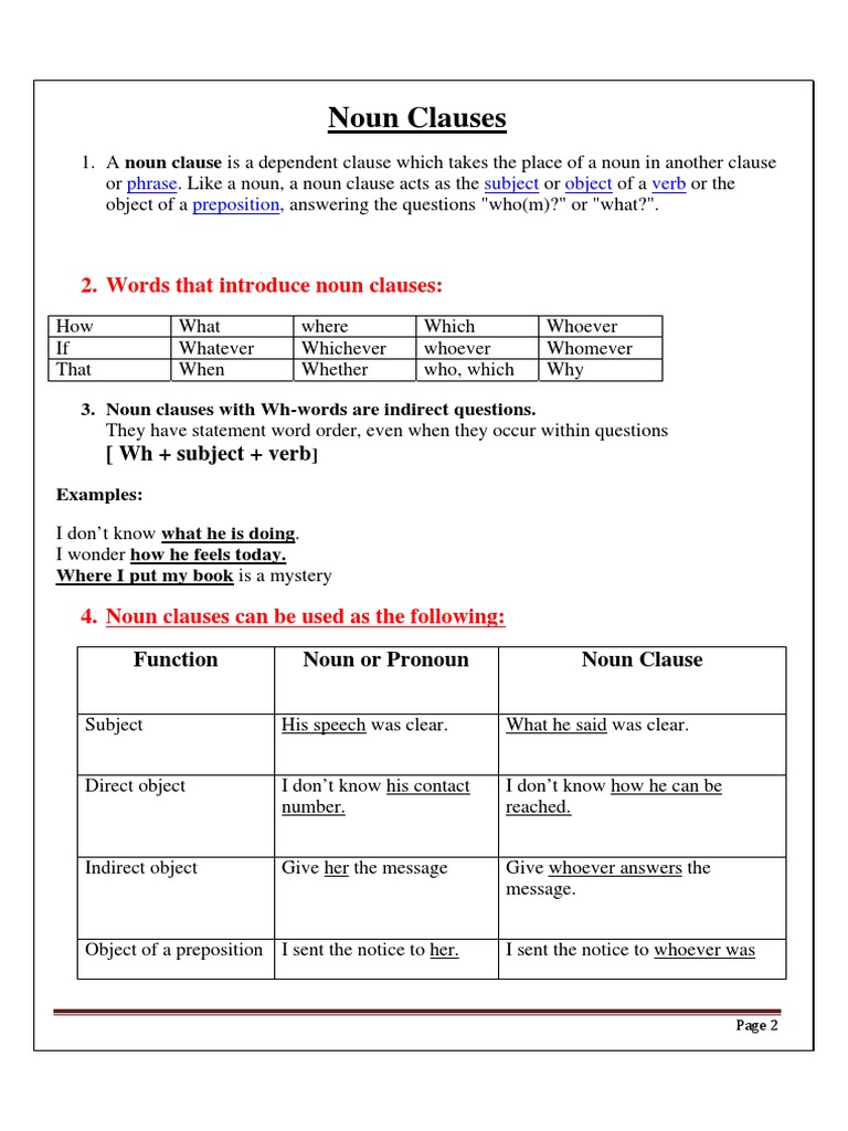 1.1 examples of noun clauses as a noun clause does the work of a noun, it can be subject to a sentence, object of a transitive verb, object of a preposition, apposition to. Do you know what the teacher said? A noun clause is that contains a finite verb and functioning like a noun within a sentences. Little's second son arrived, everybody noticed that he was not much bigger than a mouse. — e.b. English as a second language.